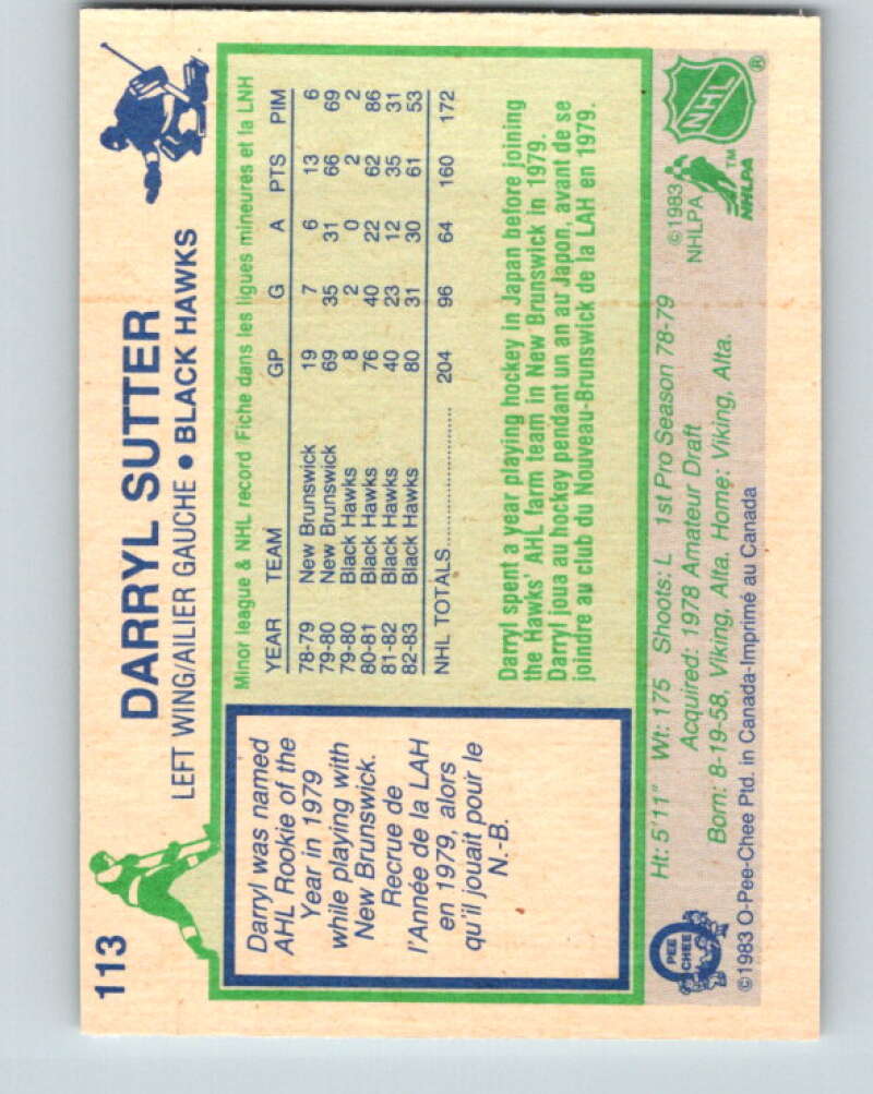 1983-84 O-Pee-Chee #113 Darryl Sutter Chicago Blackhawks V27074