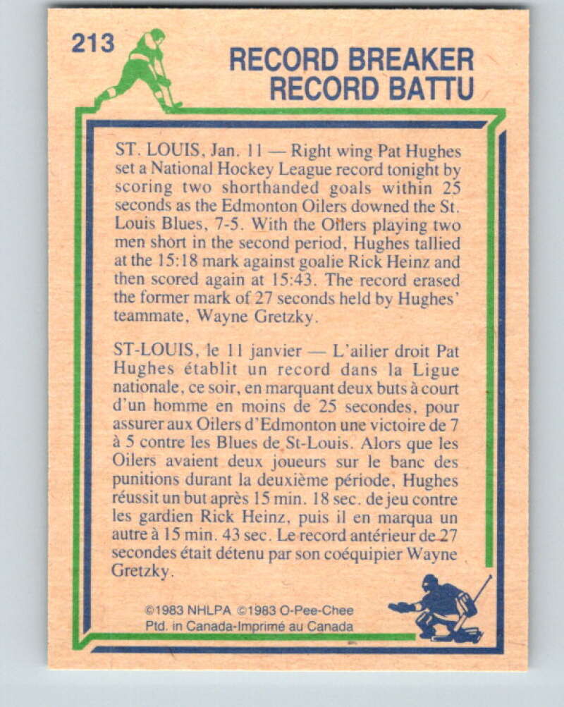 1983-84 O-Pee-Chee #213 Pat Hughes RB Edmonton Oilers V27413