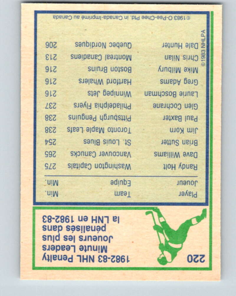 1983-84 O-Pee-Chee #220 Randy Holt LL Washington Capitals V27429