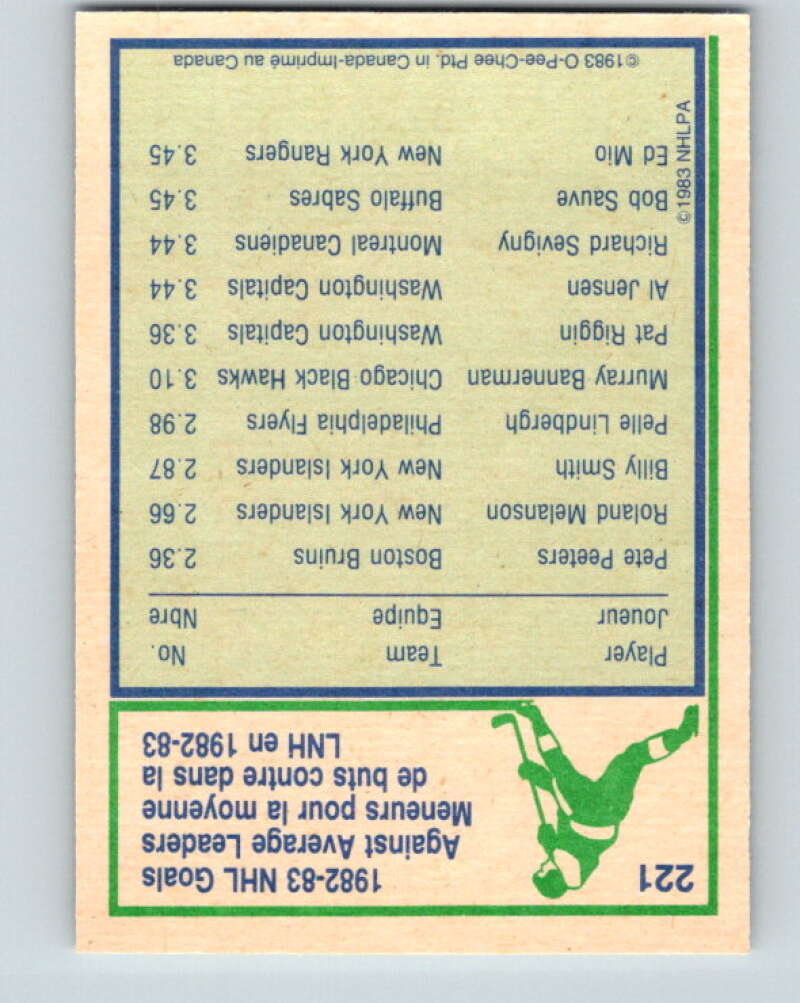 1983-84 O-Pee-Chee #221 Pete Peeters LL Boston Bruins V27430