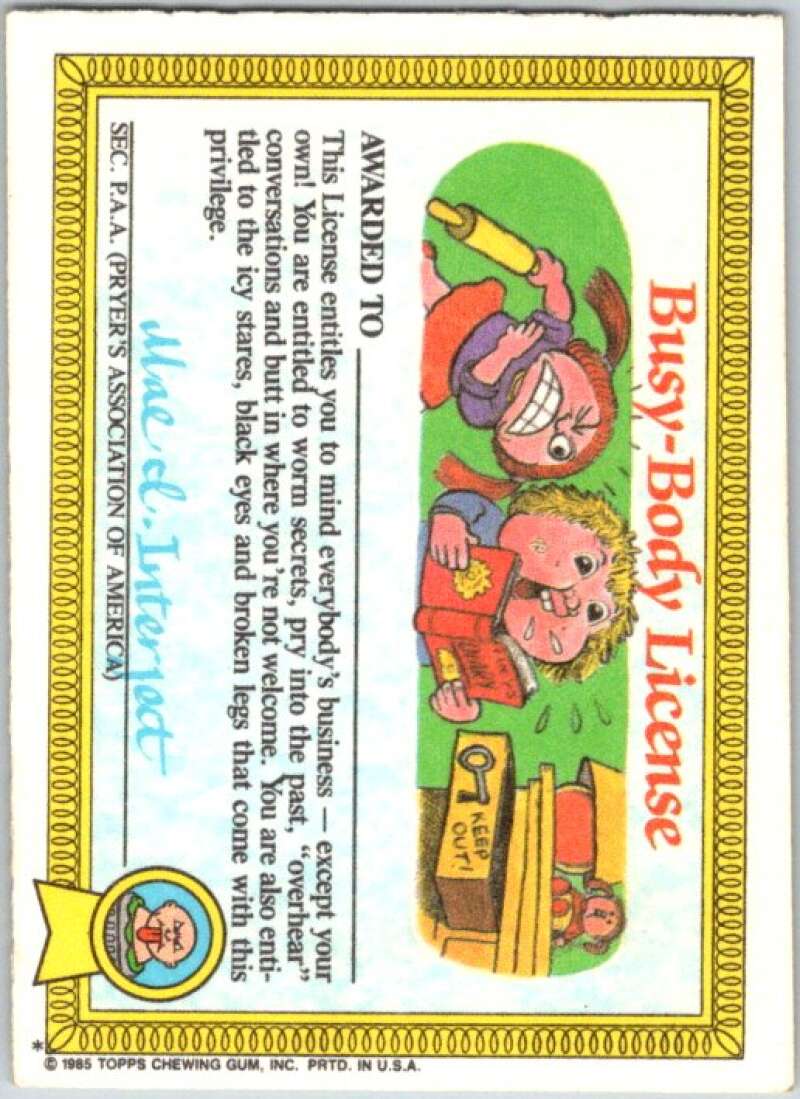 1985 Topps Garbage Pail Kids Series 1 #35a Wrinkly Randy V44620