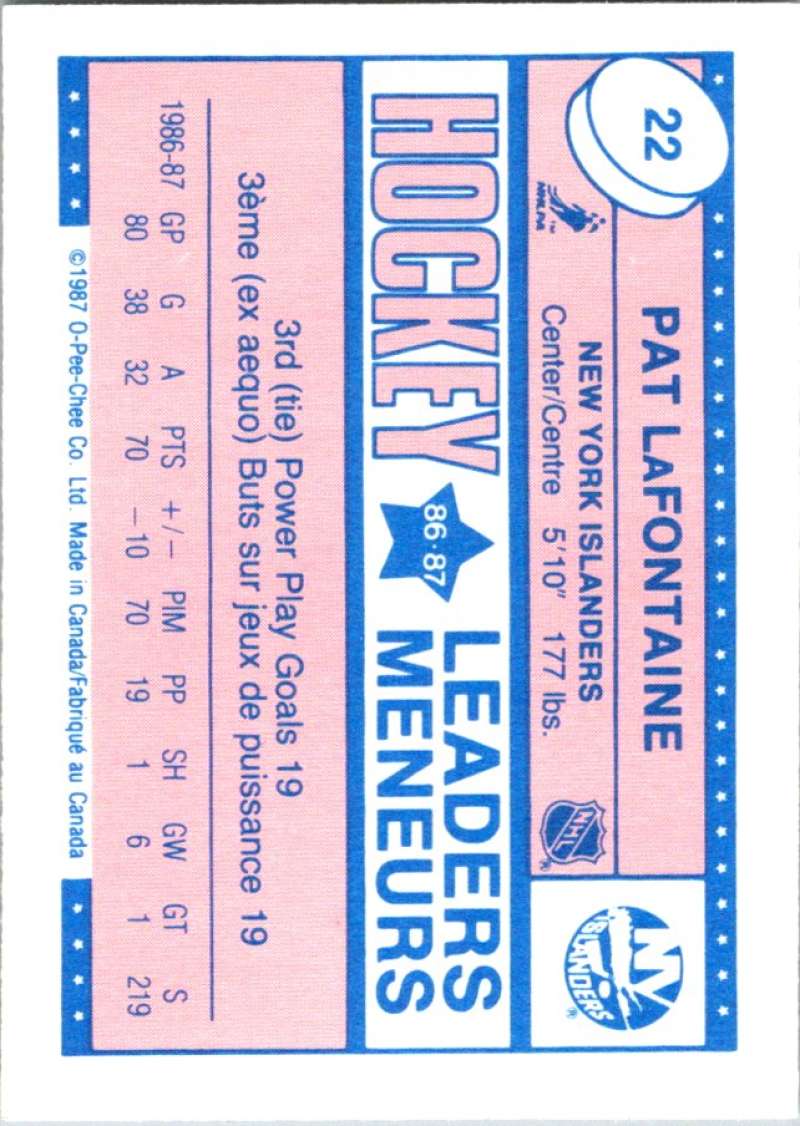 1987-88 O-Pee-Chee Minis #22 Pat LaFontaine NY Islanders NHL 05411