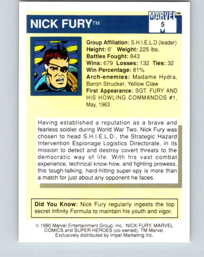1990 Impel Marvel Universe #5 Nick Fury V36301