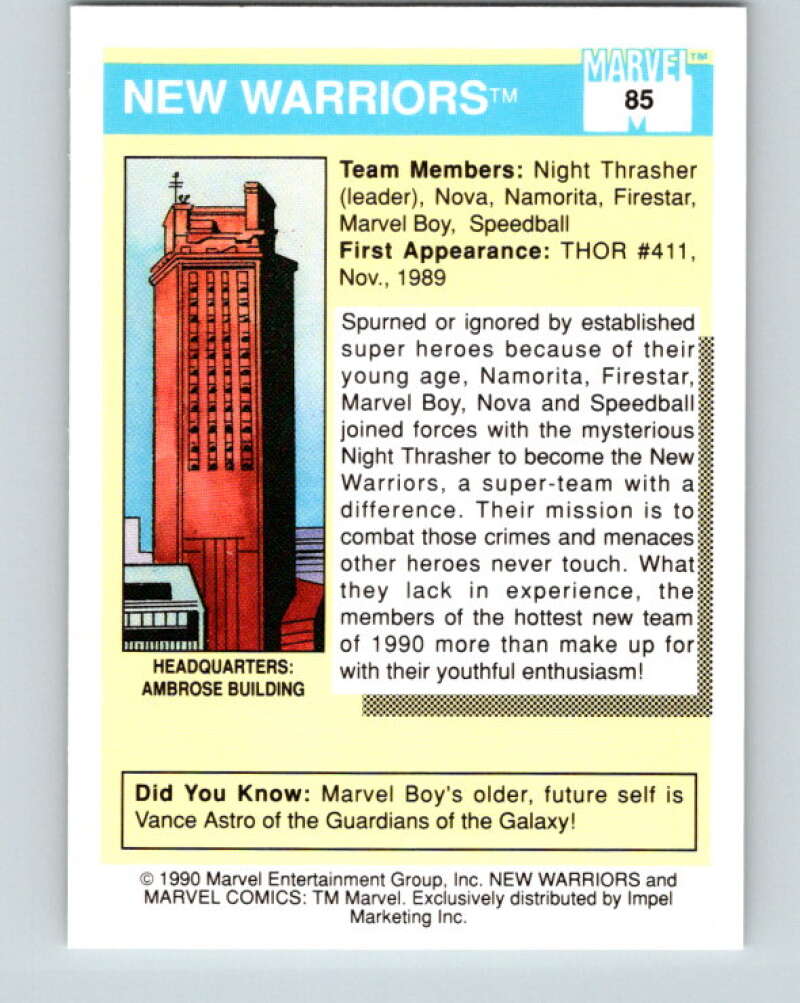 1990 Impel Marvel Universe #85 New Warriors