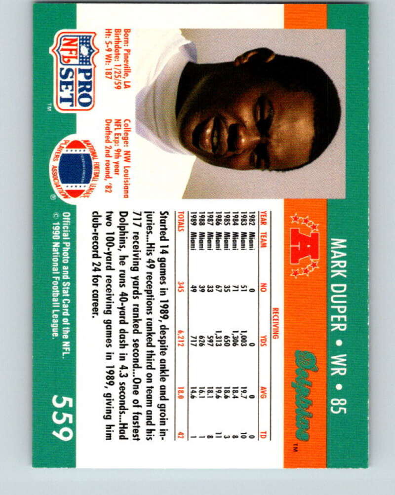 1990 Pro Set #559 Mark Duper Mint Miami Dolphins