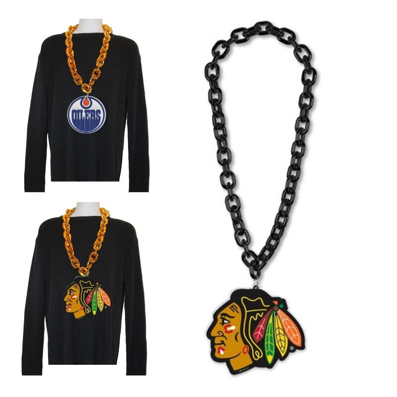 Chicago Blackhawks Hockey Big Chain Necklace - 38" plastic chain with foam logo